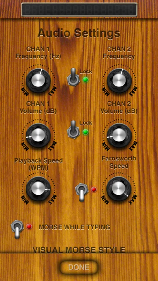 A Visual Morse screen can be configured to use the screen to signal with morse code. The visual feature can use an image of a light bulb or a color. The shape can be circular or rectangular. Shutters can be used, with a modifiable shutter count and speed. This feature is only activated for morse playback.