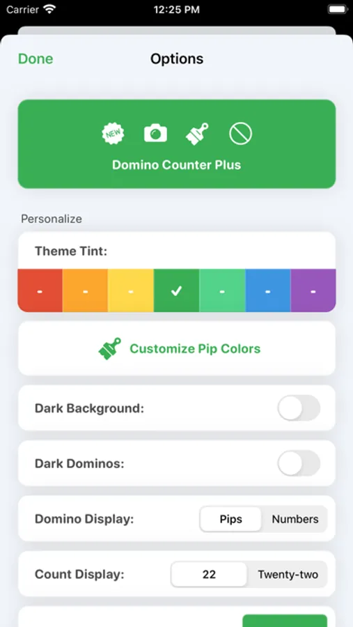 Customize a handful of options to make Domino Counter look how you want! Match the domino colors using the camera color picker or by using the custom color picker.*