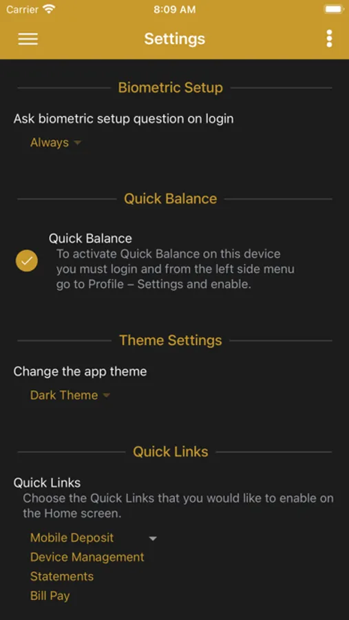 **Some features must first be setup from the online banking site before they can be used on the Mobile App.