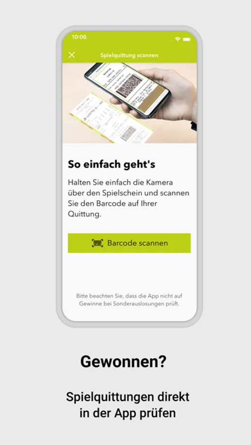 Our WestLotto-App shows you whether you have won or not: If you have submitted your ticket online, your winnings are displayed in the App. You can also easily check Westlotto-Shop purchased ticket with the App: Scan the barcode on the ticket and you will immediately know the result.