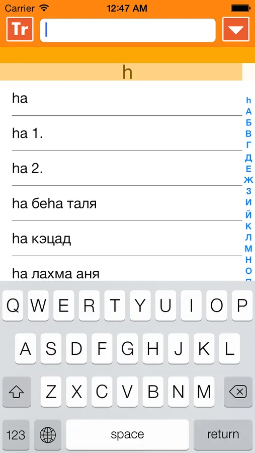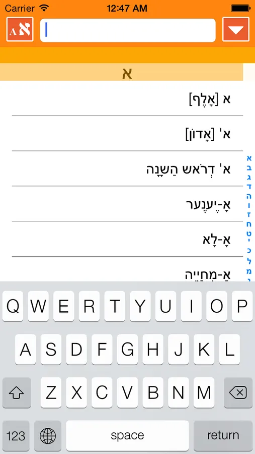 * Transcription search (using Russian letters + "h" for representing Hebrew sounds) - "Translit" mode.