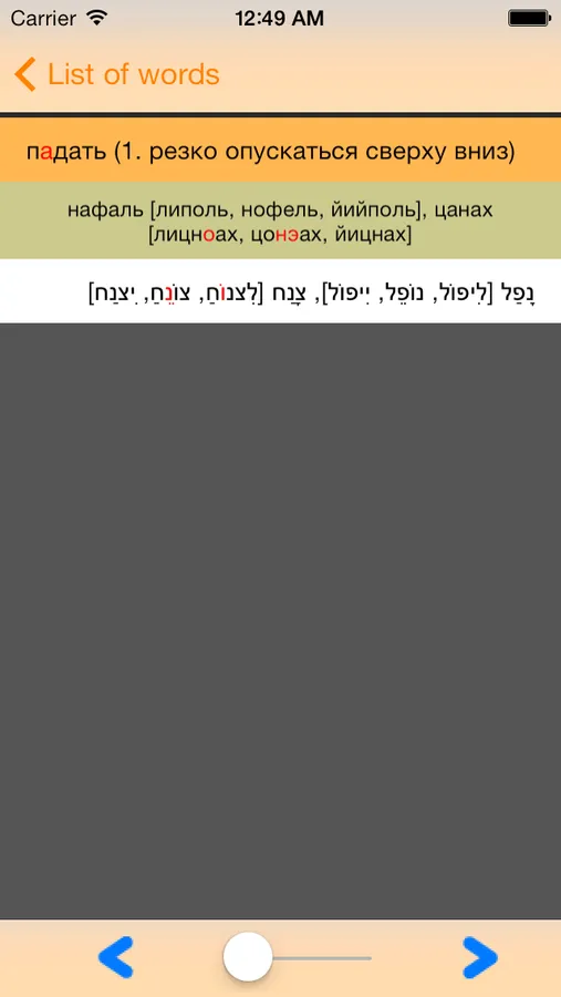 * Accent emphasis in Hebrew and Russian words (if no emphasis - accent is on last vowel)