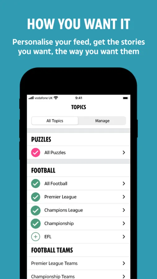 Personalise your own feed on the ‘My News’ tab, choosing the subjects you want to read about – and removing the ones you don't. It's easy to edit so you can get the stories you want, the way you want them.