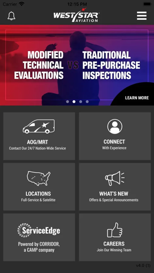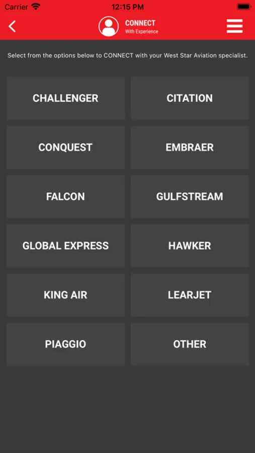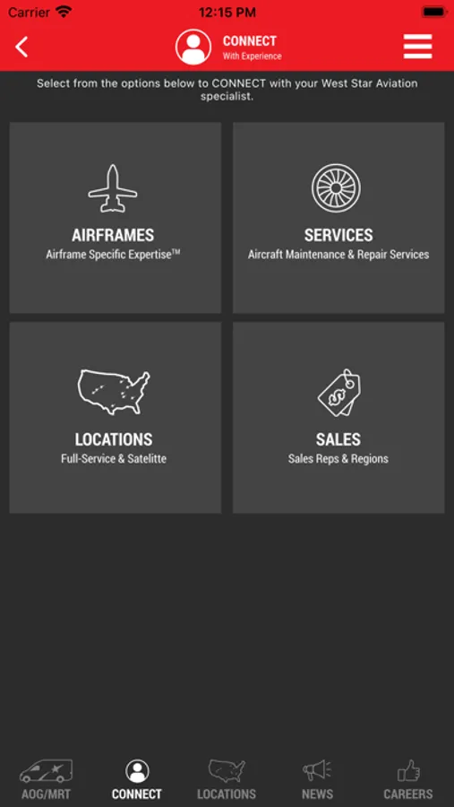 With a few simple taps, the "Connect With Experience" mobile app provides a direct contact with the appropriate experienced West Star Aviation personnel, for the award winning aircraft service you need, when you need it, at a location convenient to you.