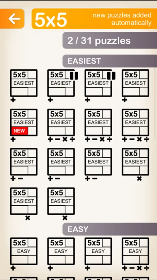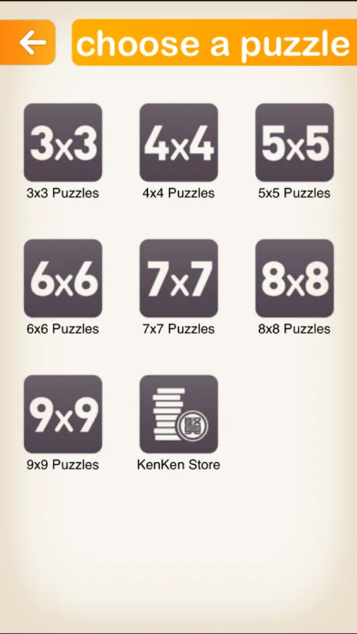 There are virtually unlimited KenKen puzzles available to you on this app. The first 50 are included FREE with the download. If you need more...no problem! Just order them and they'll appear immediately. YOU select the size, difficulty level, and operations.