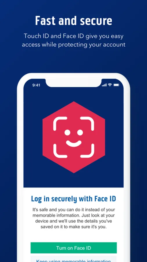 • Log on quickly and securely with Touch ID, Face ID or three characters from your memorable information