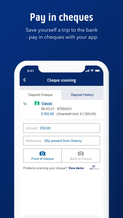 • Pay in cheques