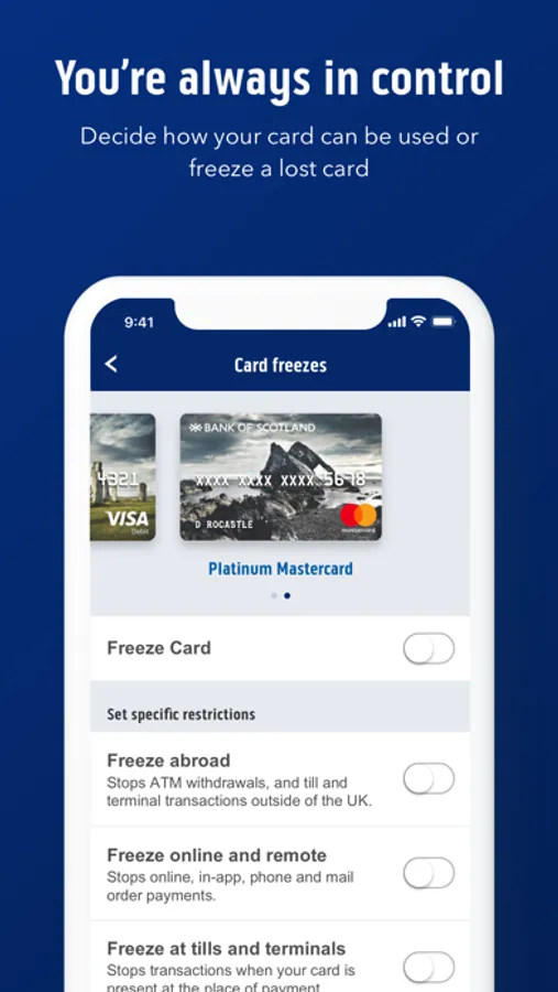 • Easily request a new card, report lost or stolen cards, freeze them and order replacements