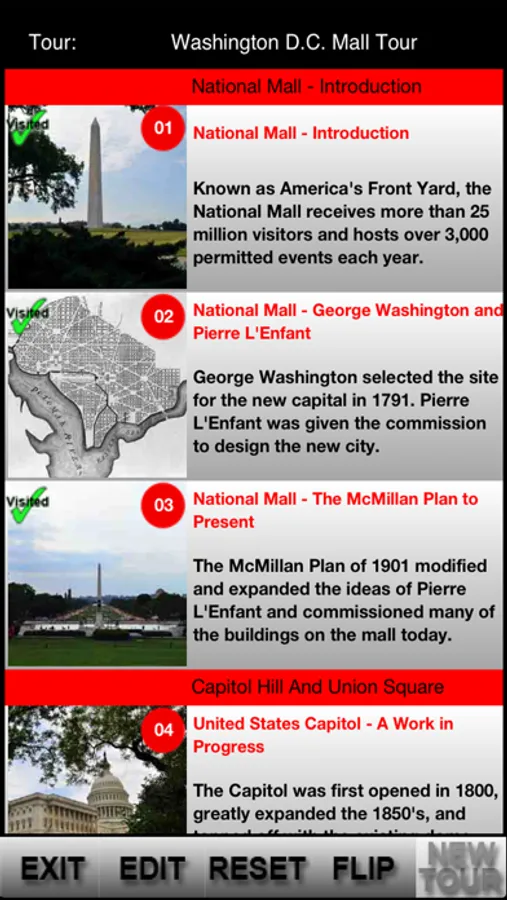 Take an exciting journey through 220 years of American history and be a witness to how the National Mall was transformed into the amazing place it is today. This iSmartGuide GPS navigated tour is simply the best and most comprehensive audio tour guide for the National Mall available. After completing this tour, users will never view the National Mall and Washington, DC the same way again.