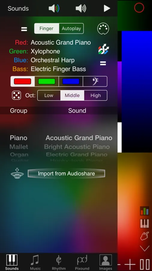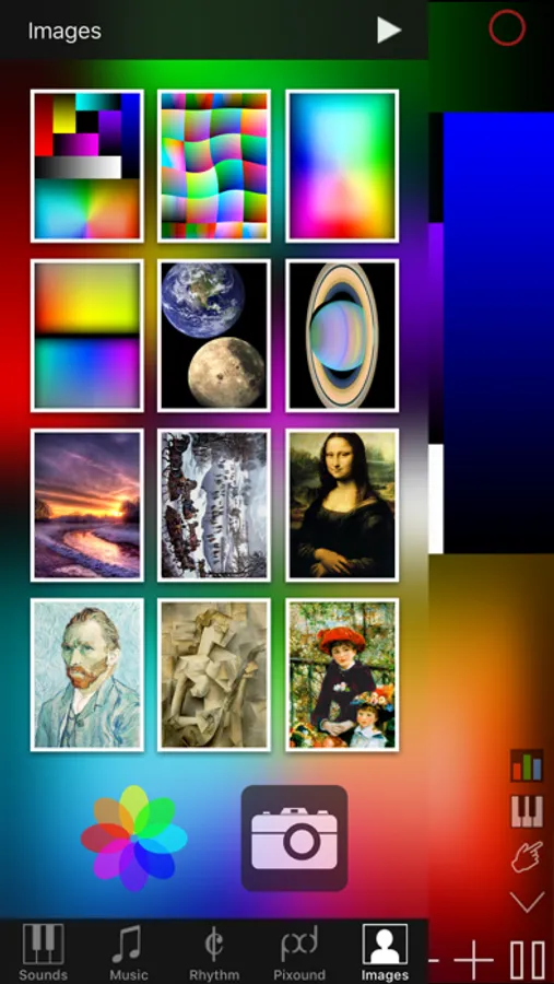 Pixound is a revolutionary form of musical entertainment! Pixound provides a deep musical experience that lets YOU instantly create music using any picture. It's pure fun to play (at any age) and deep because it can be used to play music like you've never heard before. It's so much fun that artist Peter Max bought an iPhone just to have Pixound! Since there is no limit to what pictures you can play from art and graphics to photos and they can be combined with thousands of different musical settings, there is no limit to the music you can create and enjoy. You owe it to yourself to try Pixound!!! By the way, you will learn a lot about music just playing with Pixound so it's also an educational tool, sometimes referred to as a Deep Toy.