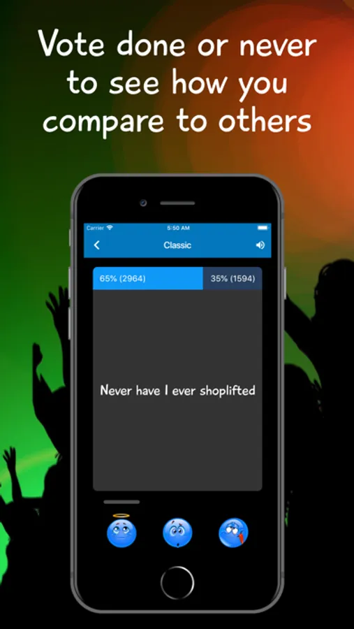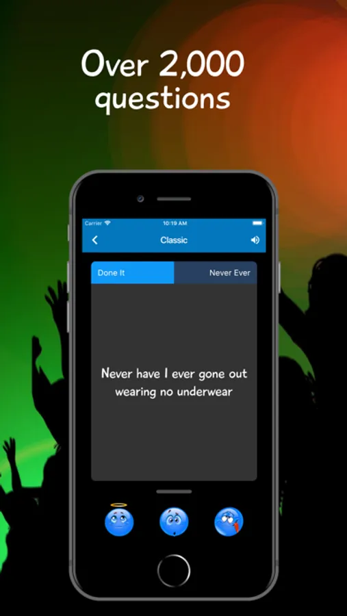 - Over 2,000 Never Have I Ever questions, new questions are automatically downloaded from ineverparty.com.