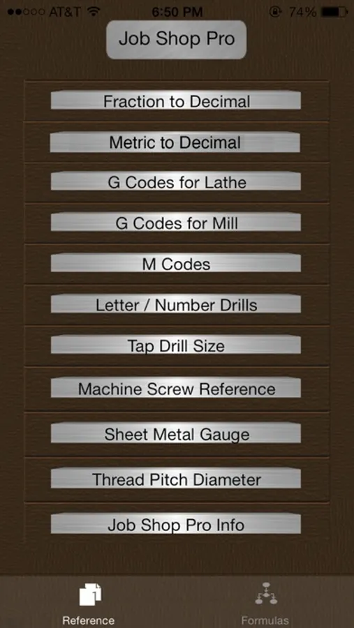 Are you a metal working professional? Job Shop has more of the information you use on a daily basis than you'll find anywhere. Things like drill sizes, tap drill sizes, g and m codes as well as angle and speed and feed calculators, a bolt circle calculator and surface finish calculators. Calculate sine plate stack ups, ball mill step over scallop height and true position deviation.