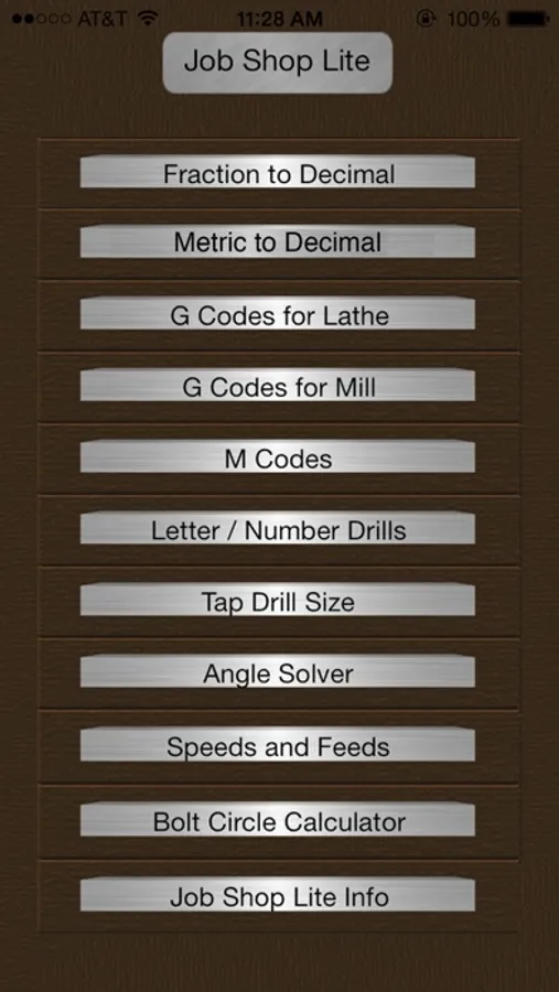 Are you a metal working professional? Job Shop Lite has more of the information you use on a daily basis than most of the paid apps. Things like drill sizes, tap drill sizes, g and m codes as well as angle and speed and feed calculators.