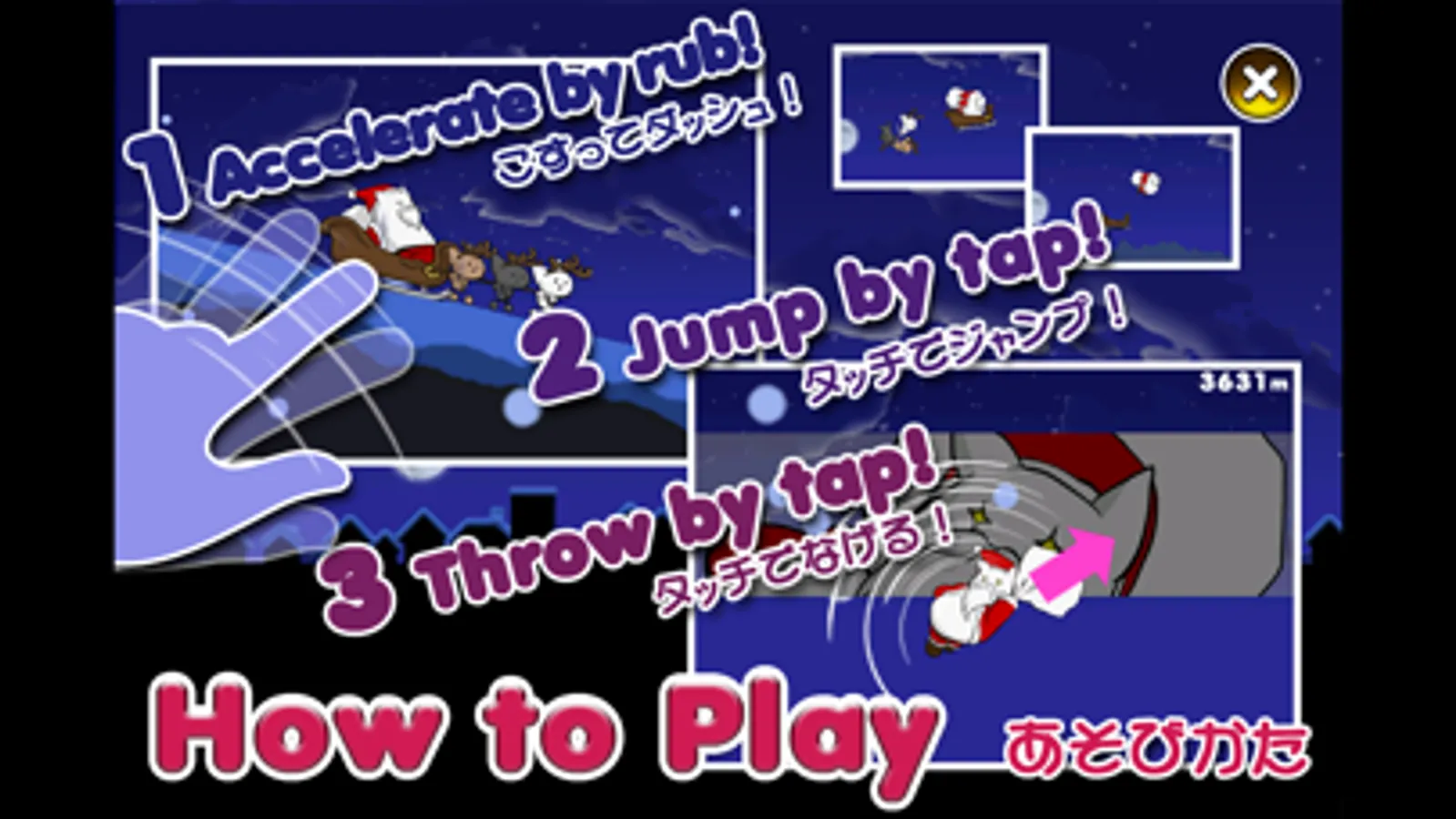 This game is the 12th iOS game for the Web Game Site "DAN-BALL". This is a Jumping-Action game to flying deliver the Christmas present in the night sky. 3 kittens pull sled on a chubby Santa, and glides slope, and jump to town!