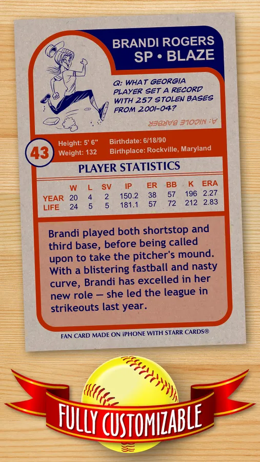 Discover for yourself why Starr Cards is being hailed as "the most exciting development in sports card collecting in the new millennium." If seeing is believing, then Starr Cards is sure to make you a believer and diehard fan. If you like softball, you're gonna LOVE Starr Cards!