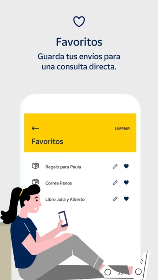 - Infórmate cuando quieras de tus envíos y pon favoritos aquellos que quieras tenerlos siempre a mano e identificados.