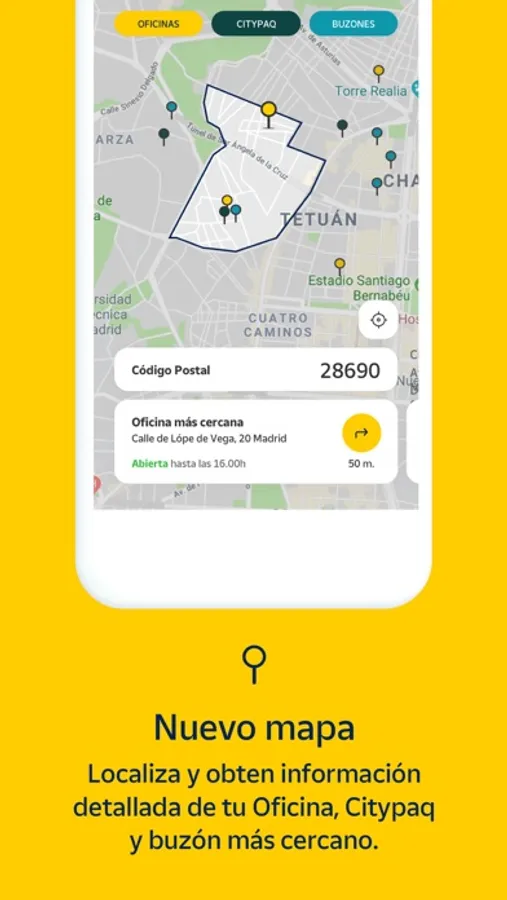 - Si activas la geolocalización podrás conocer todos los servicios de Correos que tienes a tu alrededor.