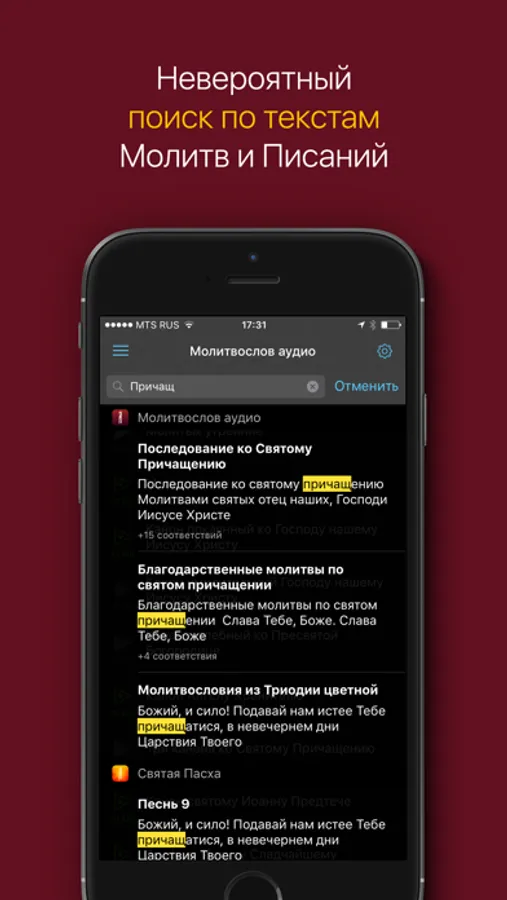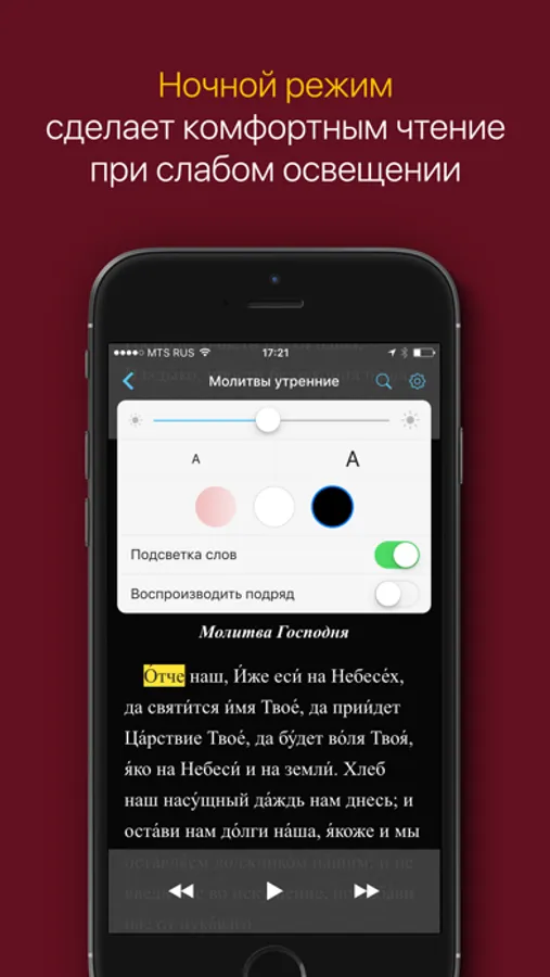 ・Уникальная подсветка слов позволяет следить за текстом во время прослушивания, помогает лучше понимать и запоминать молитвы.