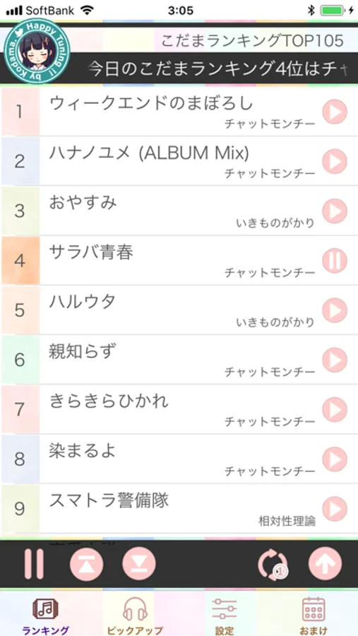 毎日こだまランキングという形でiPodの中の曲をランキングにして表示するアプリです。