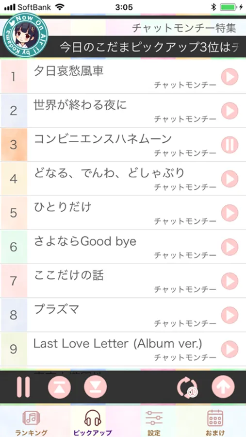 そんな時にこのアプリを使ってこだまランキングを順番に聴いてみてください。「あ〜、そういえばこの曲。昔はよく聴いていたのに最近は聴いてなかったなあ・・・」