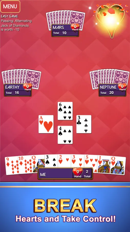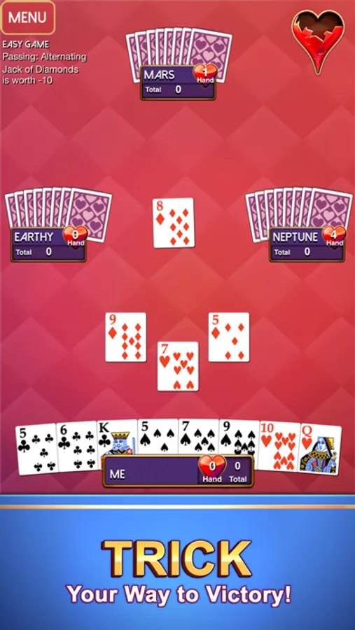 Whether you’re a beginner or a Hearts master, you’ll find a difficulty level to match your skill. Try playing with different card passing rules or the Jack of Diamonds variation!