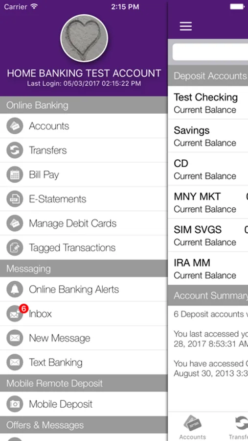 **Online customers must first set up transfer and bill pay accounts prior to using these features.