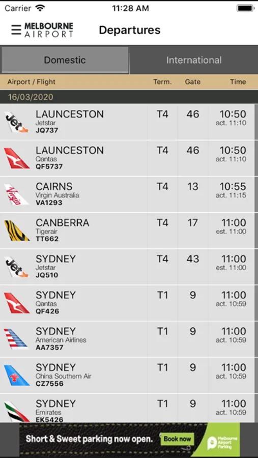 The official Melbourne Airport (Australia) app puts the essential airport information at your fingertips to make your journey easier. Featuring flight lists, real time status updates, information about your relevant gate, check-in counter, terminal and carousel. Information to help you find your way, shop, dine, park and many special offers.