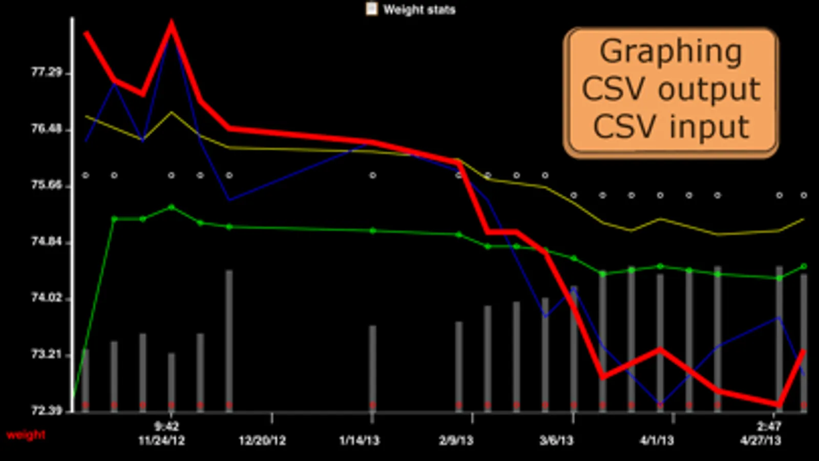 Turn your iPhone sideways to graph your tracks; edit past datapoints within rTracker and export to CSV files for deeper analysis as a spreadsheet.