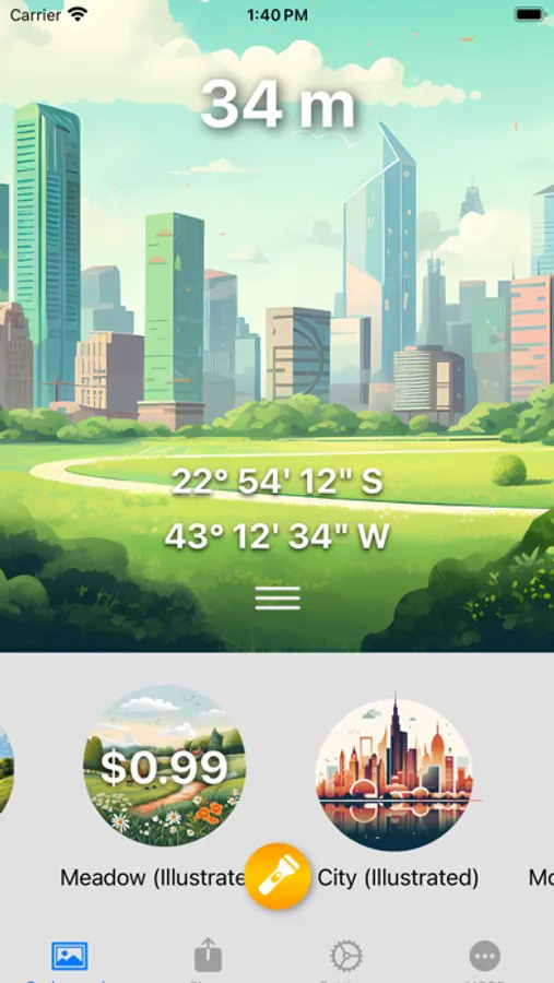 View your altitude or elevation on stunning landscapes that adjust with the time of day. The barometer lets you track your altitude changes based on the change of pressure. Just set your reference pressure and altitude in order to use the Altimeter for seeing the difference in elevation of two points. Great for hiking and other outdoor activities. The Compass shows your real-time orientation in this elevation app.