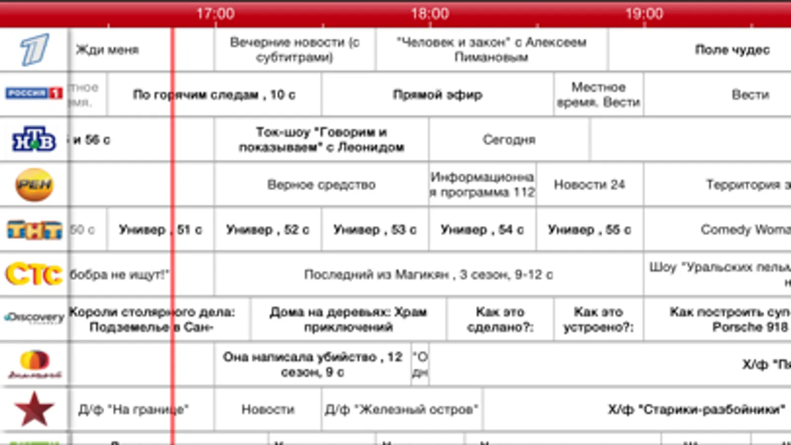 TV listings available for most channels from Russia, Ukraine and other CIS countries including regional channels.