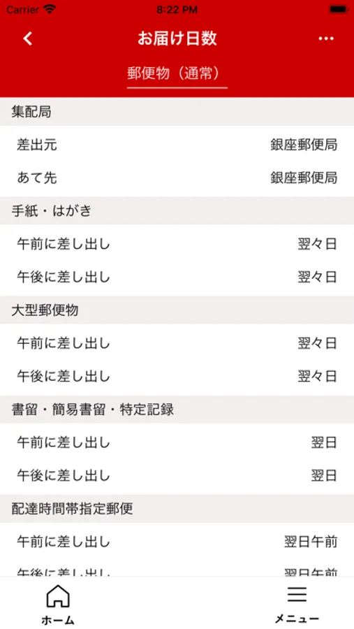 ・離島等を差出元又はあて先とする場合は、検索結果よりも日数(時間)がかかる場合があります。