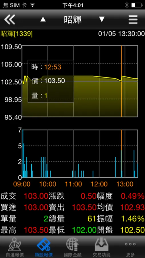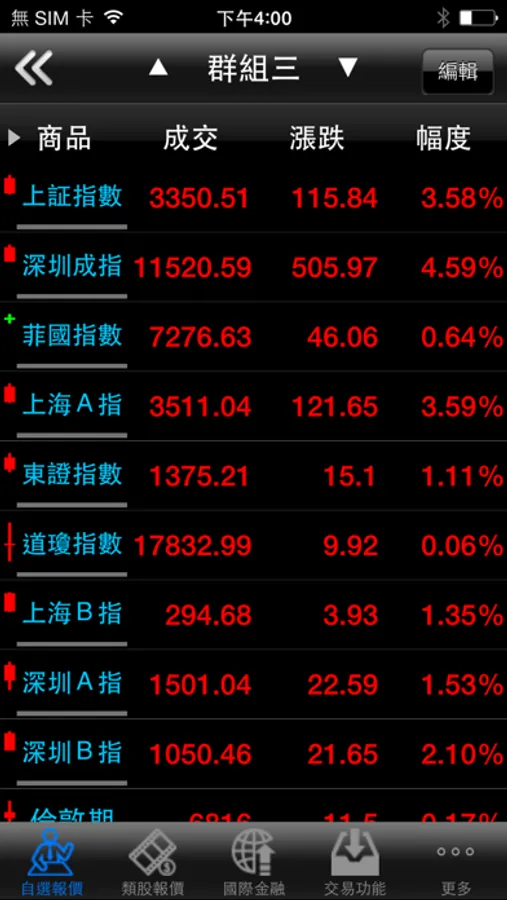 -個人化專屬自選報價功能,提供五個群組,150檔商品設定功能。