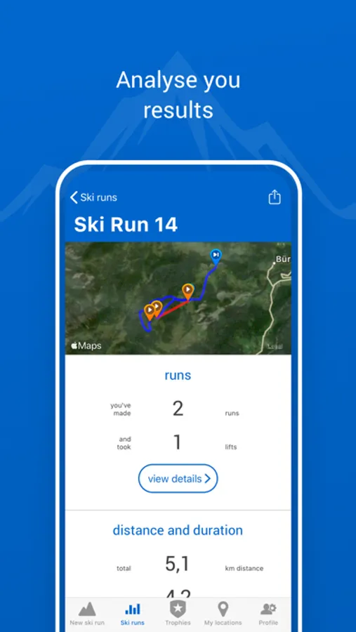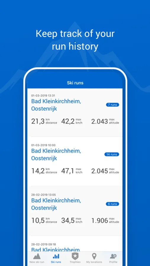 Ski run is the app for skiers and snowboarders. Find out where, the altitude and how fast you've been. You can watch the route and runs on a map and analyze your run with graphs. Inspire your fellow skiers by showing your runs and trophies.