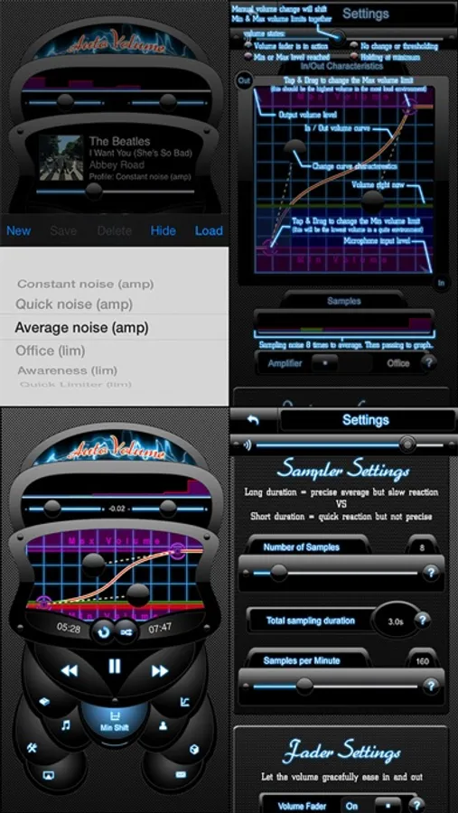 Forget the volume buttons while listening to music! Traveling on noisy bus? Use Amplifier mode to make music volume gracefully adjust itself depending on the average noise. Or you wish to listen music but your attention is needed? Use Office mode to instantly auto lower the volume on any noise.