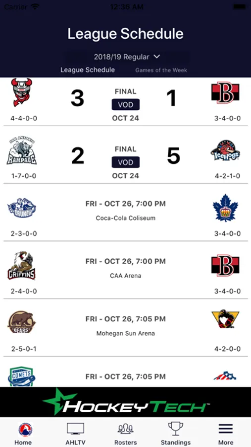 The official mobile app of the American Hockey League, featuring real-time scoring data direct from each arena. Follow every game in real time with complete box scores, game summary and up to the minute player stats. Watch AHLTV from within the app. The AHL app also features past Scores, future Schedules, Standings and both player and goalie stats.