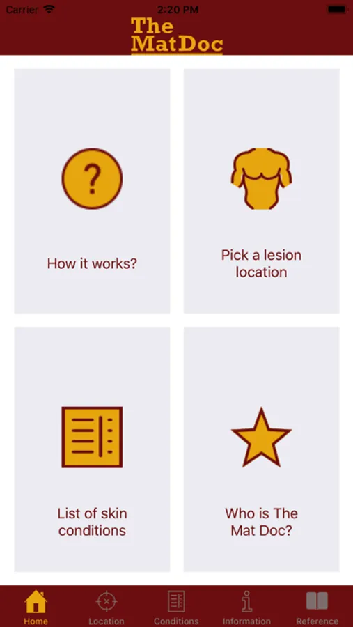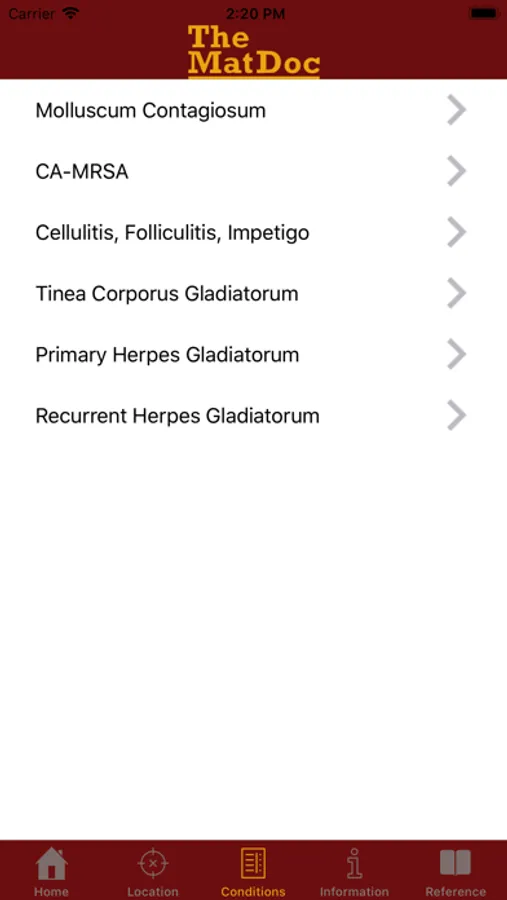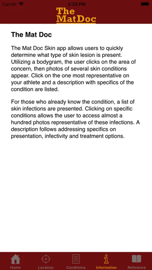 The purpose of this application is to aid the user in the identification of skin conditions common to wrestlers.