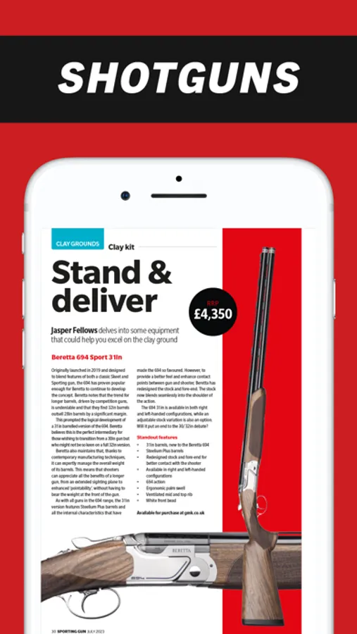 Sporting Gun is the leading monthly magazine for clay, game and rough shooters. With editorial offices in the Lincolnshire countryside, it can justifiably claim to be at the heart of the shooting community. Monthly features range from gundog training to pigeon shooting, game shooting to wildfowling – along with sound, practical, advice on equipment and techniques to help the beginner, intermediate or experienced shot get more enjoyment from their sport. Sporting Gun is a must for anyone who invests time in and money on their shooting.