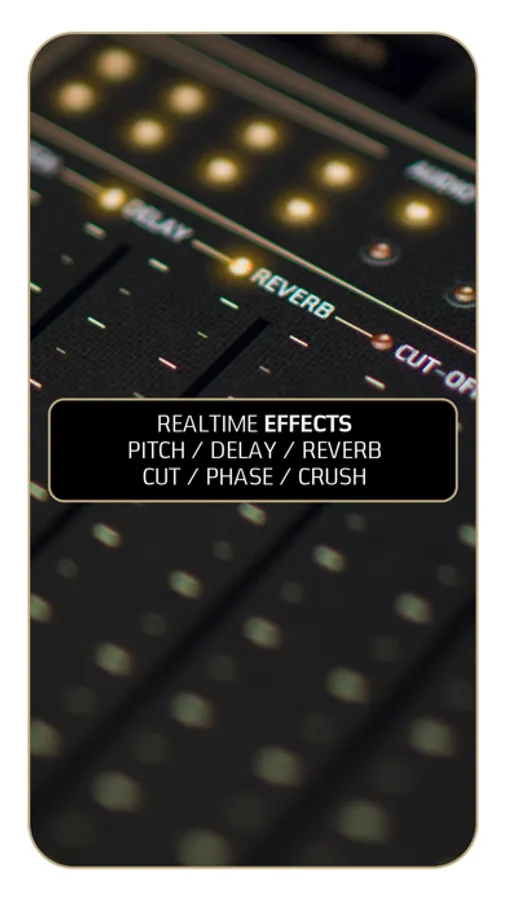 - FX panel: pitch, delay, reverb, cut, phase, crush