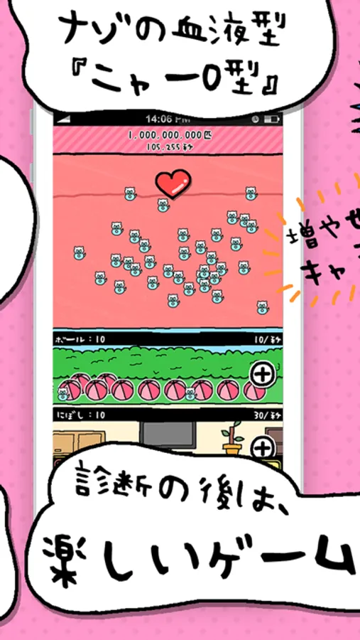 O型診断のあとに、ニャーO型(!?)を大量生産する増殖放置ゲームを楽しもう!!