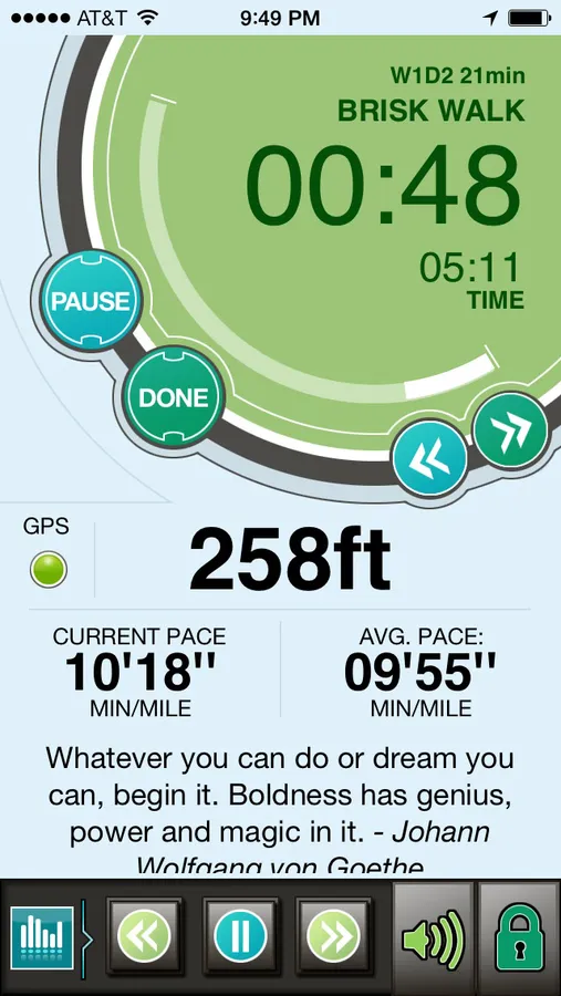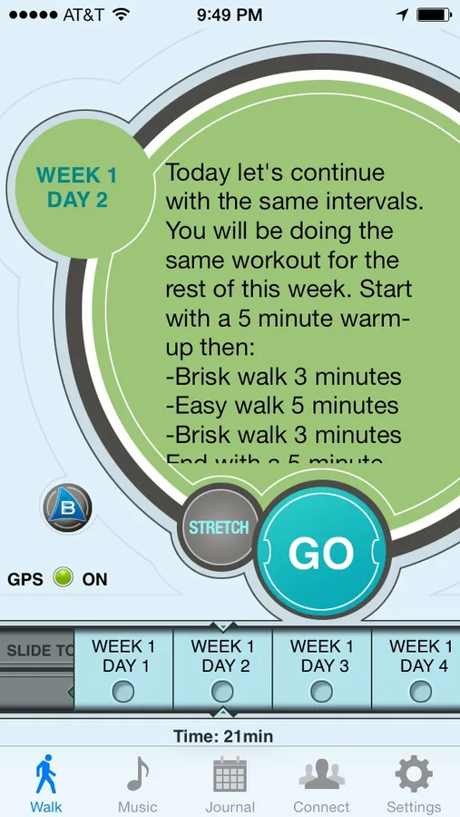All you need to do is pick your playlist and go for a walk. The app will let you know when to switch from an Easy Walk to a Brisk Walk according to the plan.
