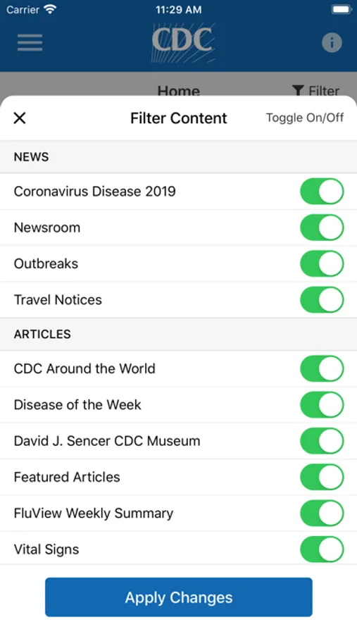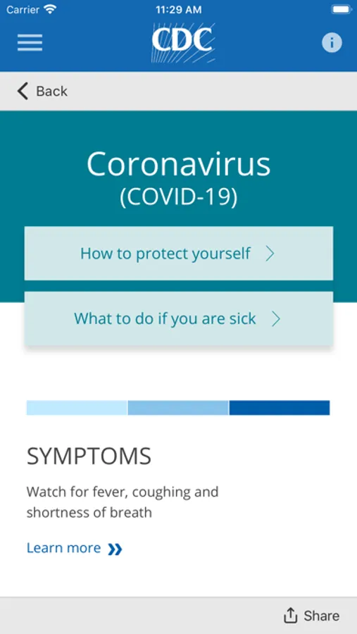 We'd love to hear your thoughts about the app! Rate the CDC Mobile App in the App Store or leave a comment to let us know how we're doing. You can even send us an email through the app if you have suggestions for improvements!