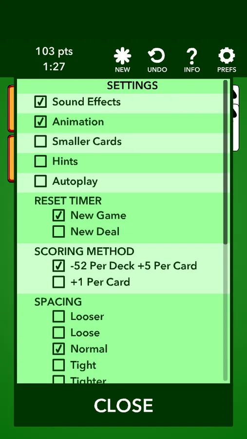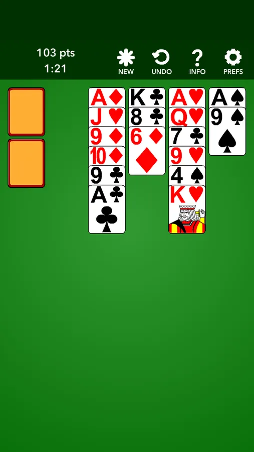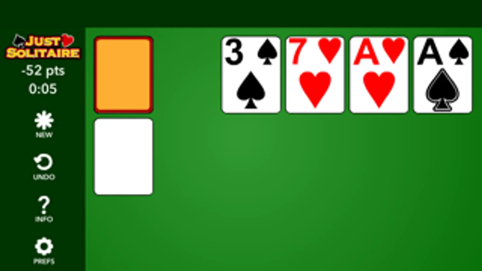 Play Aces Up solitaire, one of the simplest, quick and fun solitaire games. Move cards around my tapping or dragging them. In Aces Up you simply look for cards of the same suit and remove the one lower in value. You can choose between different backgrounds and card designs.