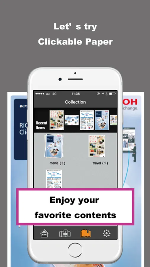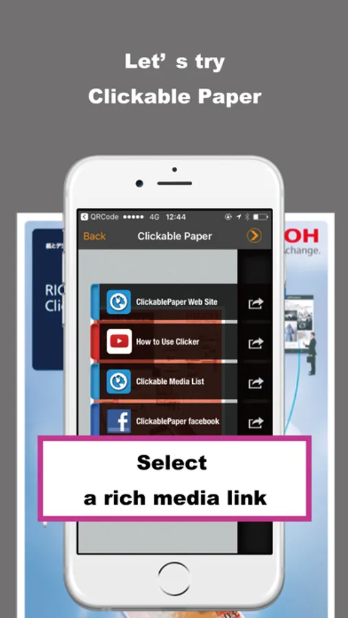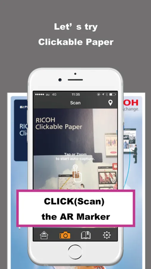CP Clicker is an easy-to-use AR (augmented reality) mobile app for Clickable Paper service by RICOH.