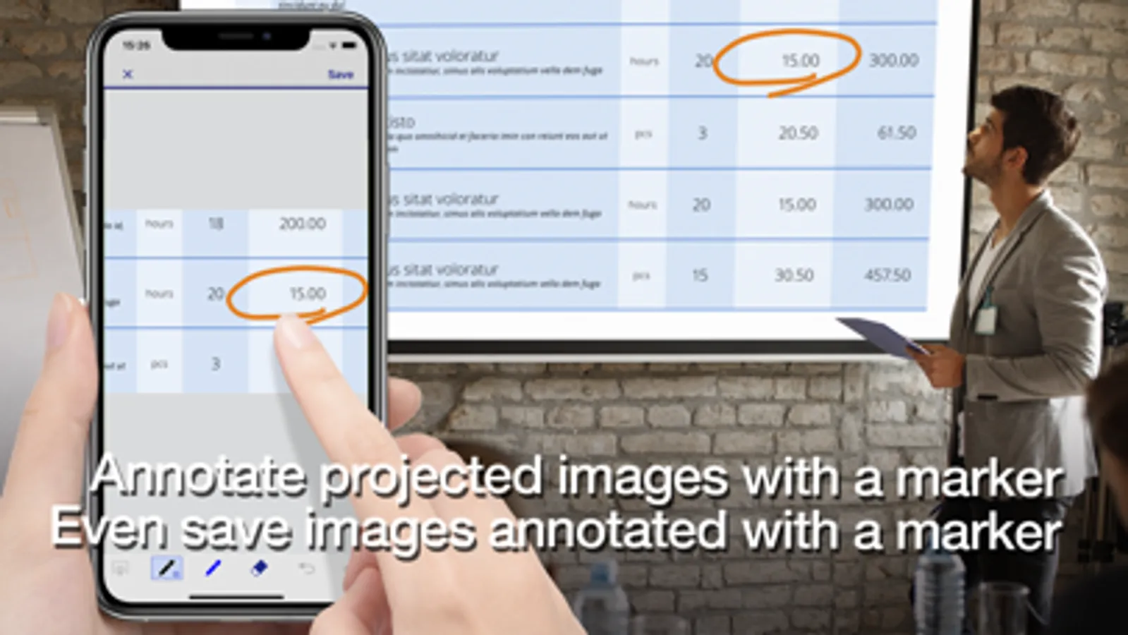 5. Annotate projected images with a pen tool and save the edited images on your device.
