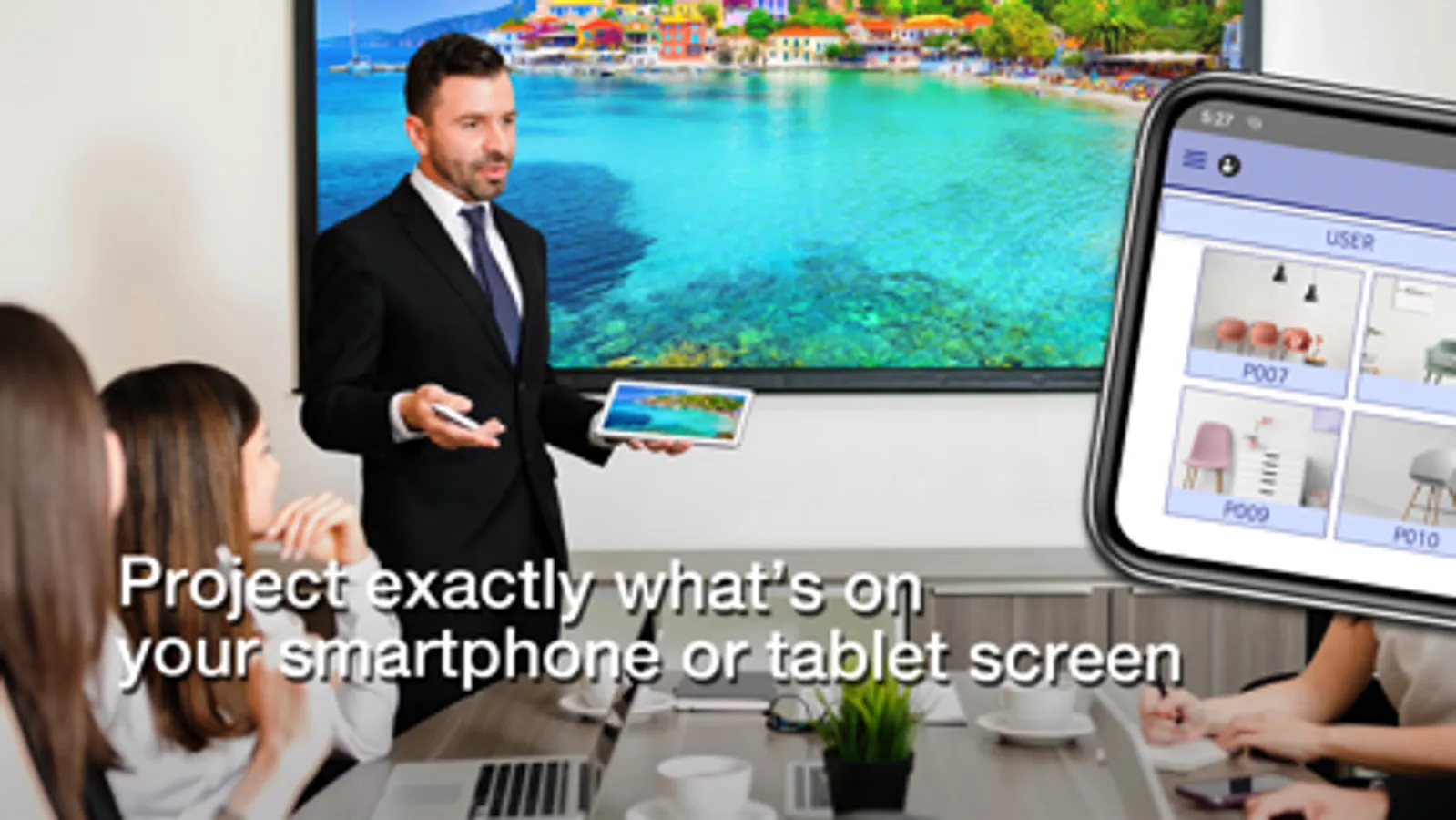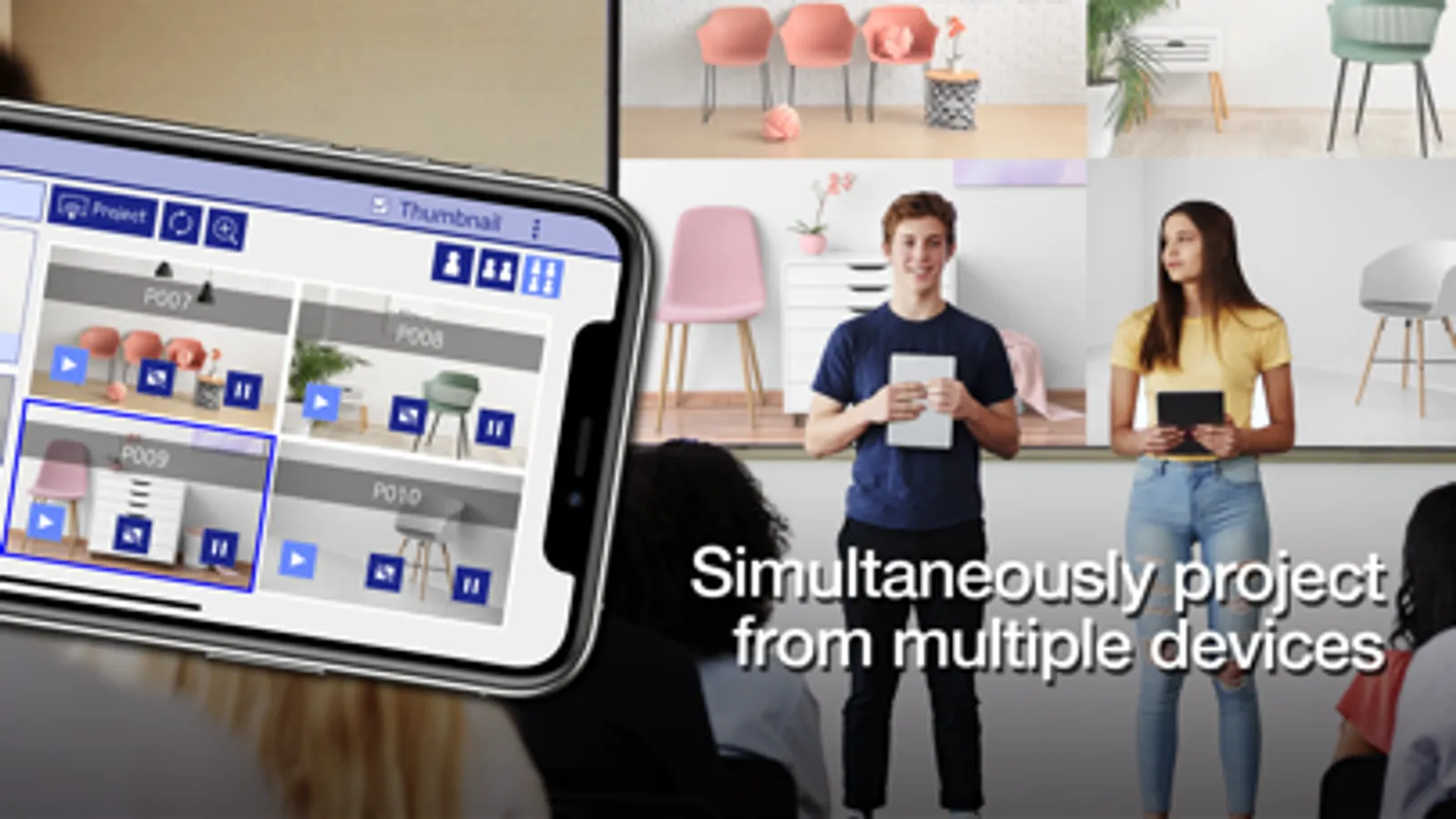 4. Connect up to 50 devices to the projector, display up to four screens simultaneously, and share your projected image with the other connected devices.