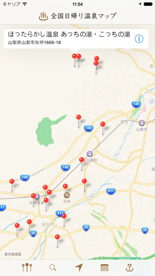 ・地図上で温泉位置の表示