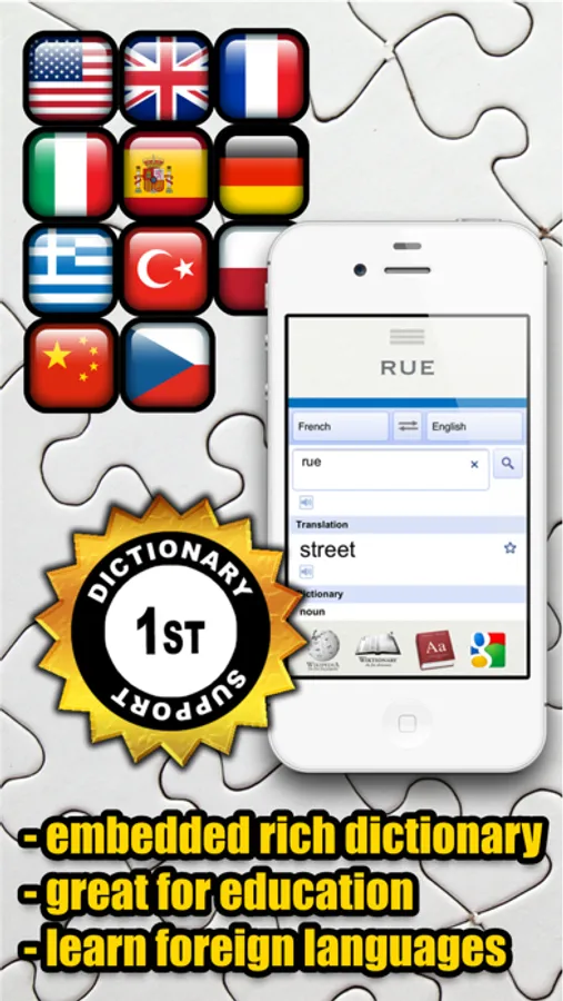 - Access to REFERENCE (Wikipedia, GTranslate, Built-in Dictionary).