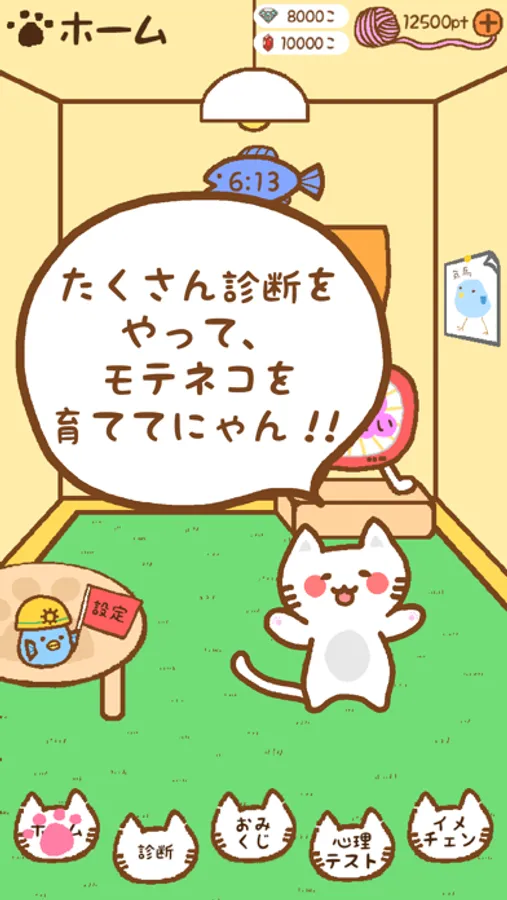 メインキャラクターのモテネコは、イメチェンすることができます。