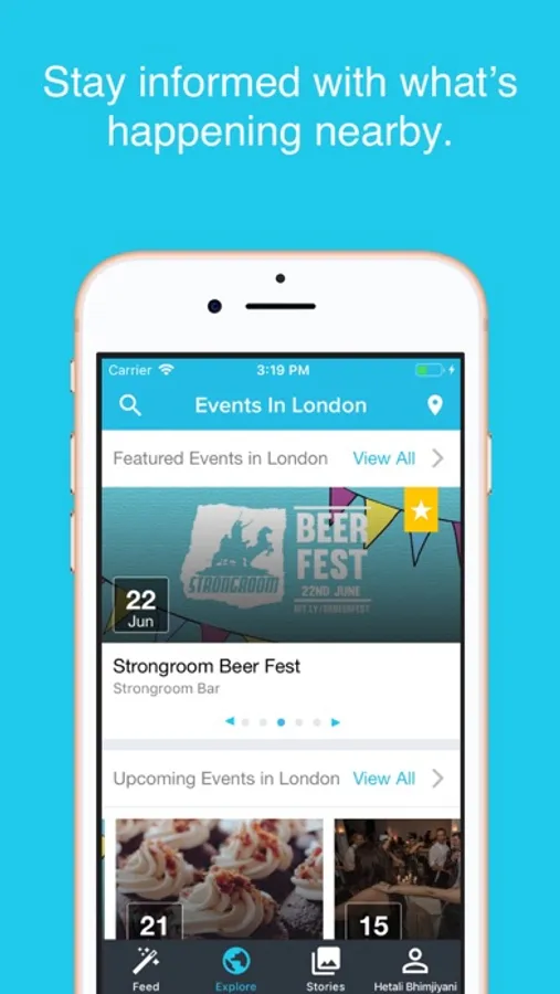 Find events your friends are attending and follow them to stay updated on their activities. Every day find some new things to do near you be it a Comedy Shows, free art classes, a business seminar or live music concert.