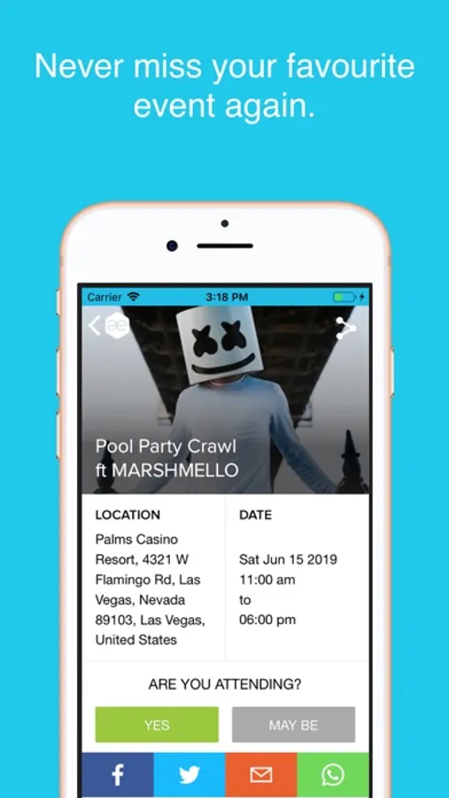Share the event easily with your friends, loved ones and anyone you think would tag along with you.